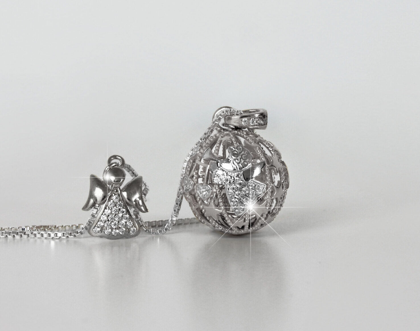 Ogni bola è un dono speciale e il Chiama Angeli Canto degli Angeli in Argento forgiato in argento 925‰, evoca un suono dolce e rassicurante delle ali di un angelo grazie alla presenza di un piccolo campanello al suo interno che emette un dolce tintinnio. Ogni movimento è una melodia che ricorda la sua presenza accanto a noi. Sul fronte, la serigrafia di un angioletto si unisce a quattro cuoricini, ognuno dei quali rappresenta un pilastro dell’amore vero: rispetto, fedeltà, complicità e passione. Valori che rendono l’amore eterno e puro.